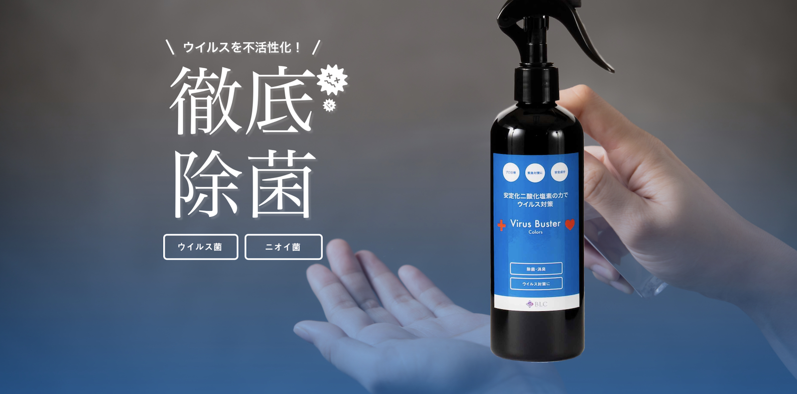 ウイルス対策・除菌・消臭商品ウイルスバスター カラーズは取り扱いが簡単で安全性にもすぐれ業務用・家庭用の除菌、消臭、鮮度保持、防カビ、防藻、配管のヌメリ防止、「院内感染」、「食品食肉工場」、「衛生対策」等、他業種に幅広く利用することができます。